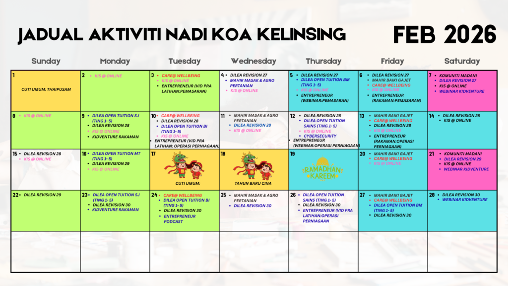 JADUAL AKTIVITI NADI KOA KELINSING FEB 2026