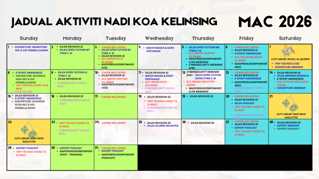 JADUAL AKTIVITI NADI KOA KELINSING MAC 2026