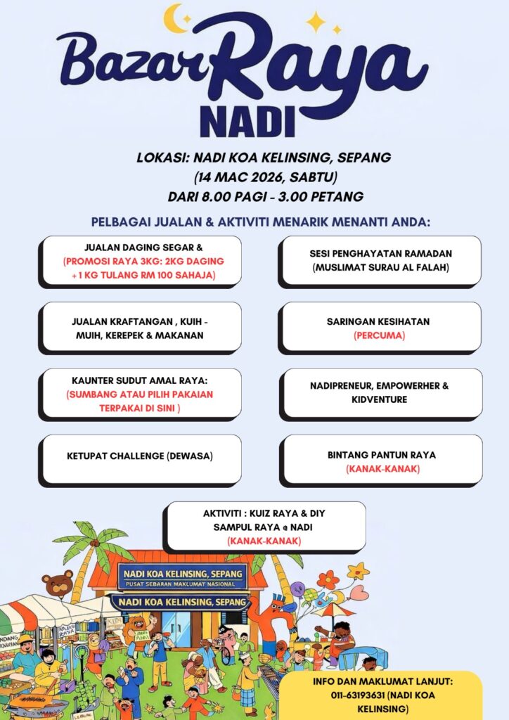 Pendaftaran aktiviti & Pertandingan: 01163193631 (NADI KOA Kelinsing)