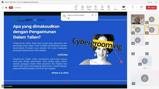 - Sesi penerangan mengenai isu semasa cybergrooming.
